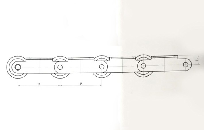 平板輸送機的鏈條,由帶K型附件的滾子套筒鏈和方管鋼組成,該鏈條在負載運行時,滾子和鏈條導(dǎo)軌之間是滾動兼滑動的摩擦運動形式。